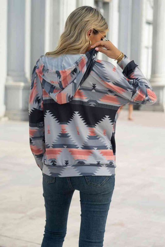 Geometric Drawstring Dropped Shoulder Hoodie