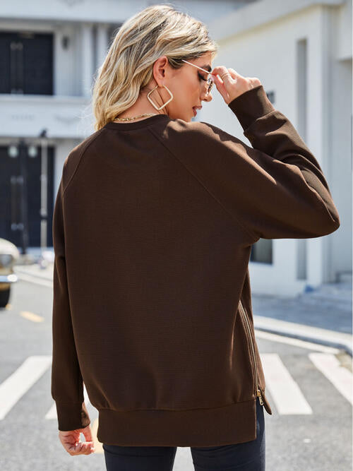 Zip Detail Round Neck Long Sleeve Sweatshirt