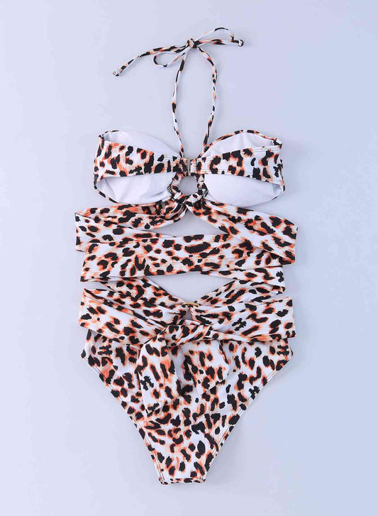 Ladder Cutout Halter Neck One-Piece Swimsuit
