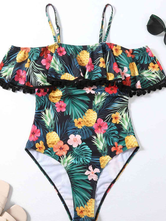 Botanical Print Cold-Shoulder One-Piece Swimsuit