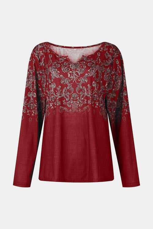 Sold outPrinted Notched Long Sleeve T-Shirt