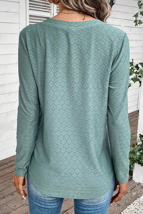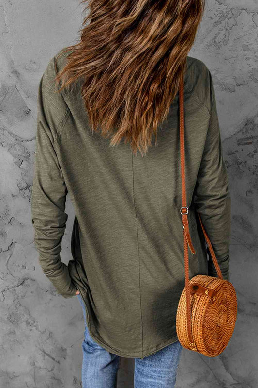 Round Neck Button-Down Long Sleeve Tee