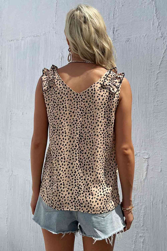 Leopard Frill Trim V-Neck Tank