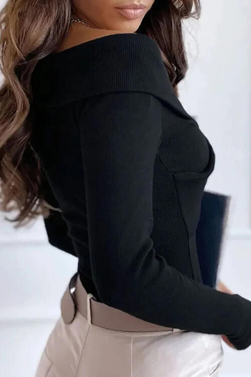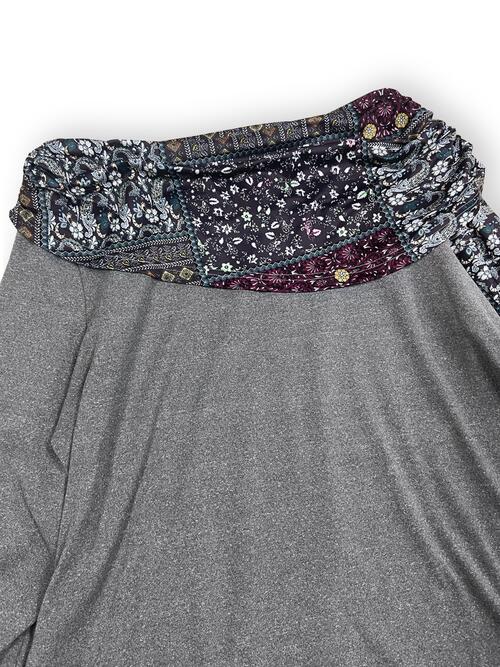 Buttoned Lantern Sleeve Turtle Neck Blouse