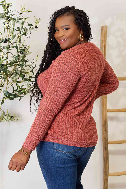 Double Take Ribbed V-Neck Long Sleeve T-Shirt