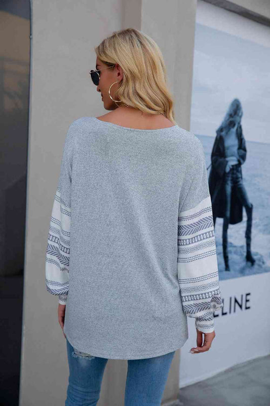 Geometric V-Neck Long Sleeve Blouse