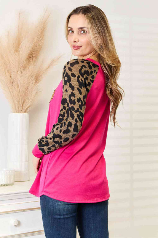 Double Take Textured Applique Long Sleeve Blouse