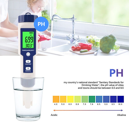 ya 26 Digital 5 in1 Water Quality Tester Pen TDS/EC/PH/Salinity/Temperature Meter
