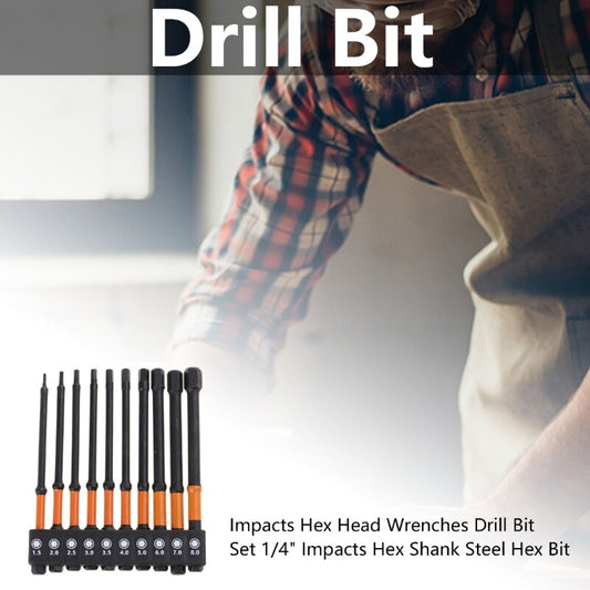 ya 26 10Pcs 1.5/2/2.5/3/3.5/4/5/6/7/8mm 1/4 Impacts Head Wrenches Drill Bit