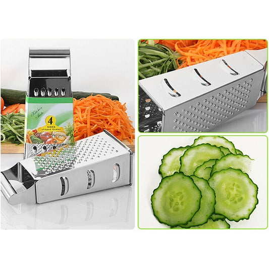 ya 26 4-Sided Stainless Steel Box Cheese Carrot Food Grater Shre er 21.5*8.5cm Silver