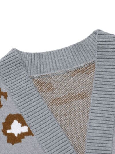 Leopard Open Front Dropped Shoulder Cardigan